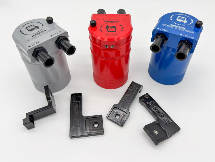 Adding a catch-can will prevent oil and other contaminants from causing buildup inside your engine. Essentially the catch can will act as a collection system. Installed into the crank-case ventilation hose to "catch" the contaminants before they can reach the intake manifold. The RIPP catch-can is focused on filtration and baffling. The RIPP Catch Can System (RCCS) has an integrated baffle plate and a Sintered Bronze Filter which acts as a liquid/fume separator creating an extra layer of filtration. This cleans the fumes as they pass from that can into your intake. With the RIPP Catch Can System you are covering all your bases to make sure you're getting the best filtration and separation on the market all it a package that's easy to own and maintain.